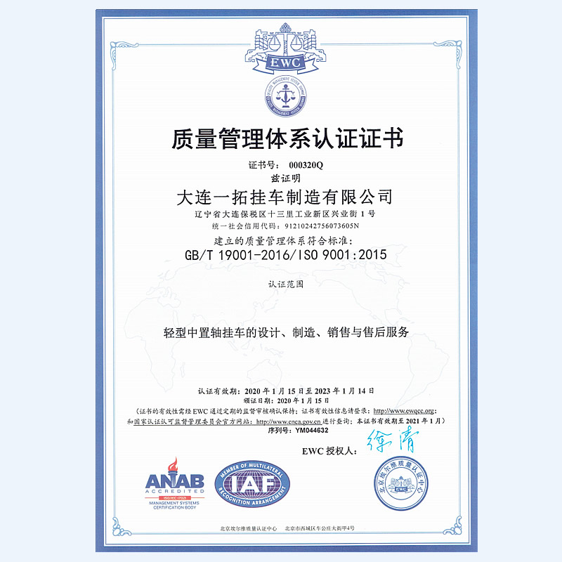 大連一拓掛車制造有限公司,地處遼寧省大連保稅區(qū)十三里工業(yè)新區(qū)興業(yè)街1號(hào),公司占地45000m㎡,總建筑面積24000㎡,現(xiàn)有生產(chǎn)、檢測、研發(fā)設(shè)備100余臺(tái)套,擁有自動(dòng)化程度很高的機(jī)器人焊接生產(chǎn)線。大連一拓掛車制造有限公司成立于2013年,是一家具備國家工信部專用車生產(chǎn)資質(zhì)企業(yè),致力于乘用車掛車的設(shè)計(jì)和生產(chǎn),主要產(chǎn)品有:平板板式輕型中置軸掛車、欄板式輕型中置軸掛車、廂式輕型中置軸掛車、特種結(jié)構(gòu)式輕型中置軸掛車,并承接各種用途輕型中置軸掛車設(shè)計(jì)等業(yè)務(wù)。公司秉承“銳意進(jìn)取,開拓創(chuàng)新,精益求精,誠信共贏”的運(yùn)營理念,竭誠為您服務(wù)。